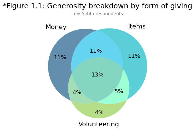 One in eight Americans gave money, donated items, and volunteered recently. These aren't three separate populations, but the same highly engaged people showing up across every form of generosity simultaneously.
