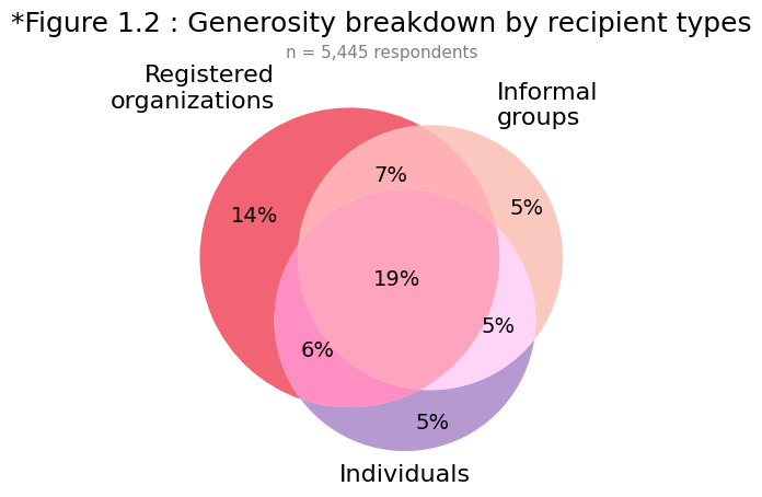 These estimates carry inherent limitations. Charitable giving amounts are self-reported and rely on 12-month retrospective recall, which is subject to memory error and social desirability bias. Results should be interpreted as indicative rather than precise. This measure does not account for relevant differences in generational wealth, accrued assets, or household size.